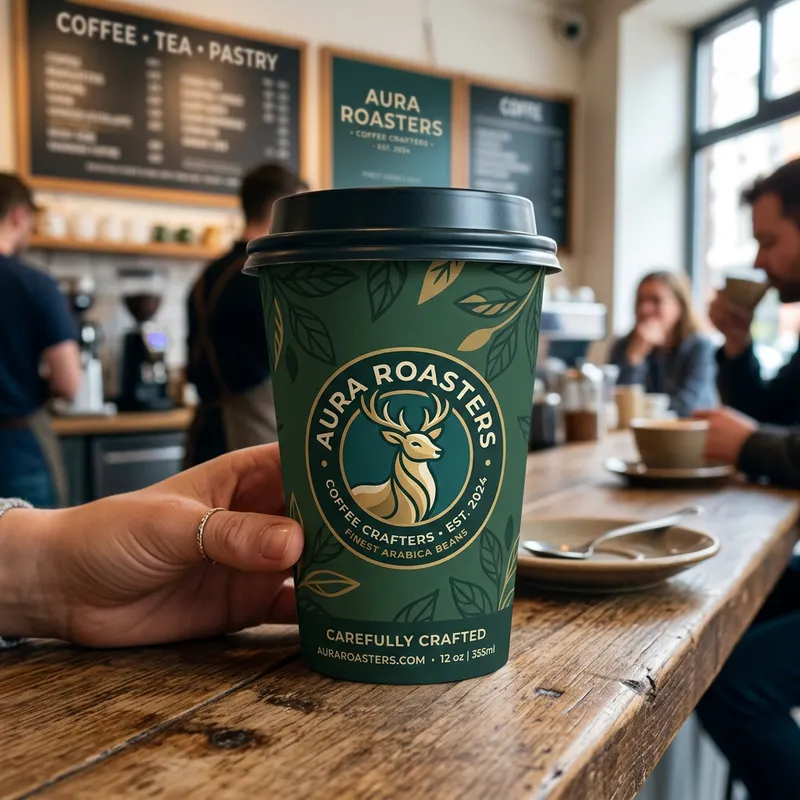 Generate a coffee cup design inspired by Starbucks or Luckin.
