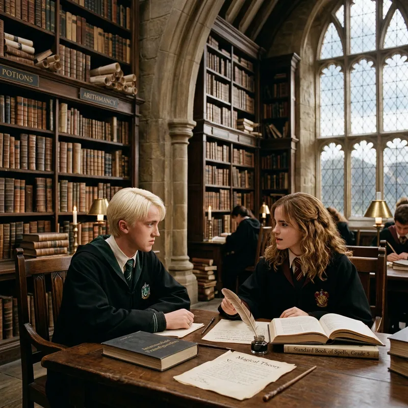 Draco Malfoy and Hermione Granger Talk in Hogwarts Library