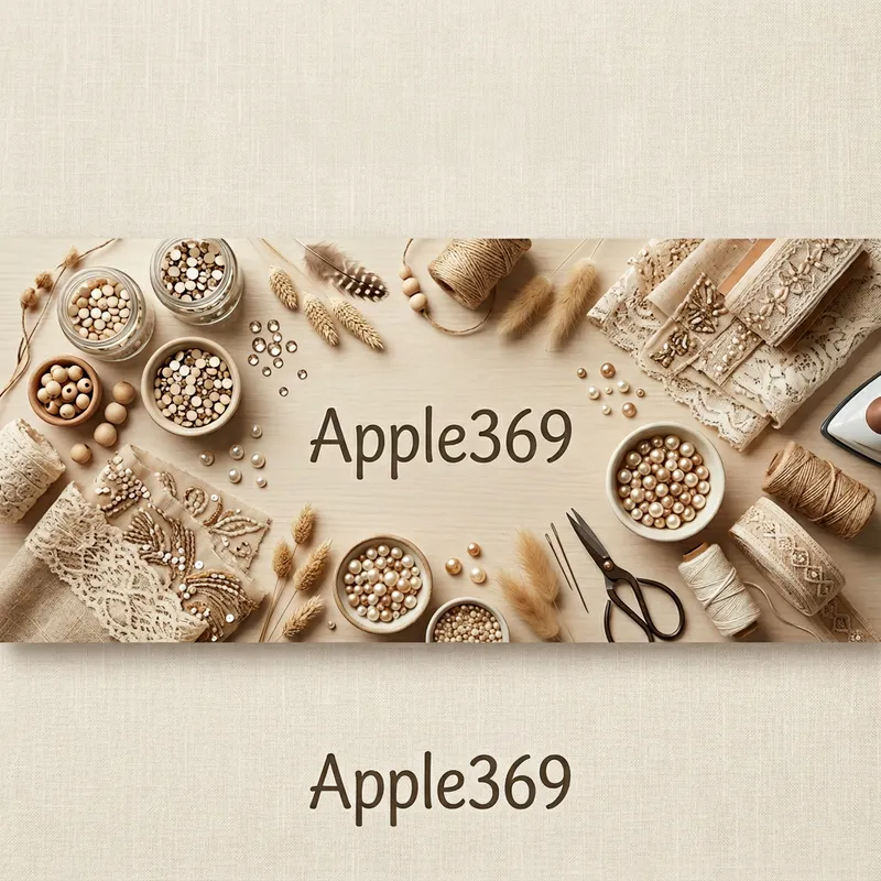 Concept: Accessories Main Products: Hotfix, Stage Costumes, Pearls, Crafts Style: Natural Color Theme: Beige Text: Includes 'Apple369' text Photo Size: 1920 * 400