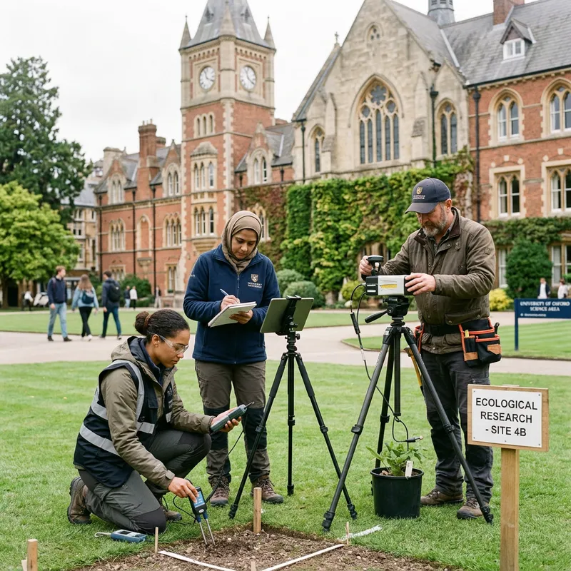 Scientists are conducting research against the backdrop of the university.
