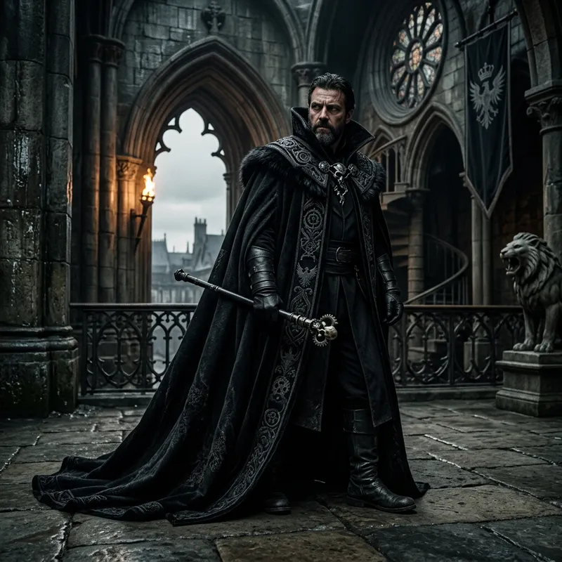 Men's floor-length cloak, imperial. Dishonored 2 Gothic. Black, oversized, to look like a villain.