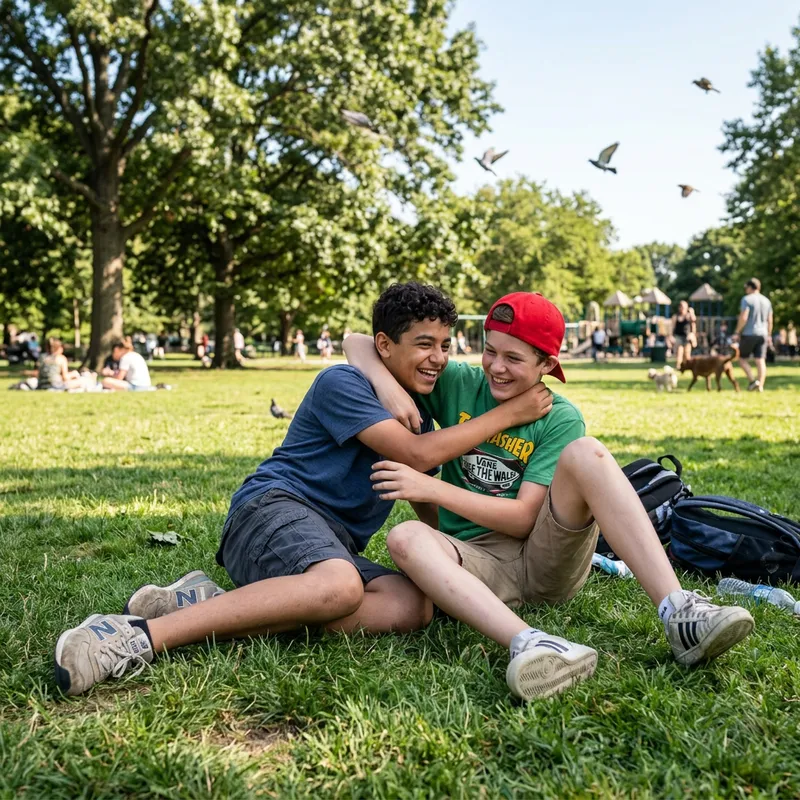 A Heartwarming Scene of 14-Year-Old Boys in the Park
