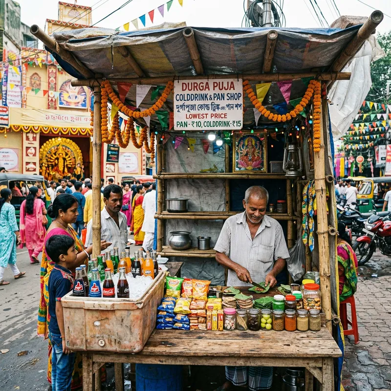 2 meter long Roadside Colddrink pan shop for Durga Puja with Zero or almost small cost.