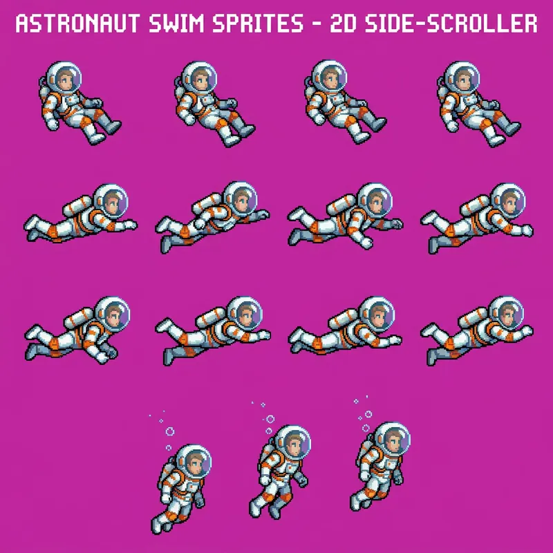 Original Prompt: 게임, 2D, 픽셀, 횡스크롤, 수영, 우주복, 스프라이트