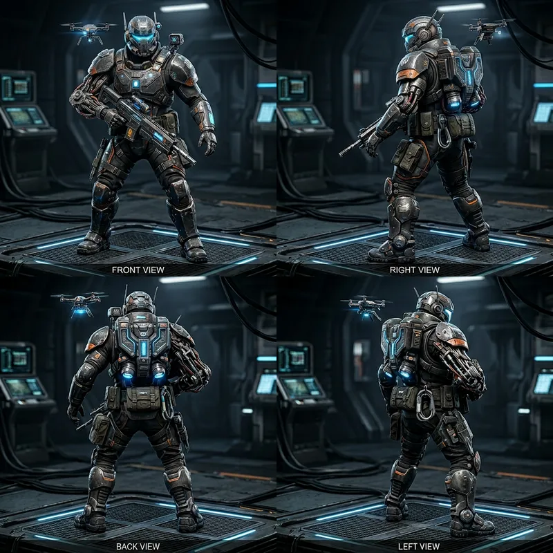 3D Sci-Fi Game Character Turnaround with Futuristic Armor