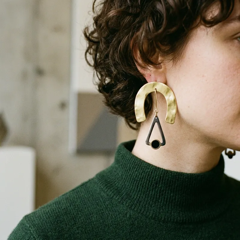 Picture a pair of earrings that take inspiration from the 80s, specifically the Postminimalism art movement. This art movement, prevalent in the 80s, was known for its focus on simplicity, geometry and minimal elements. Artists of Postminimalism explored new forms of expression, distancing themselves from the extravagances of original minimalist art. Imagine these earrings mirroring these attributes, showcasing simplicity in design, the influence of geometric shapes, and a restrained elegance that is a contrast to the opulent designs often associated with the decadent 80s style.