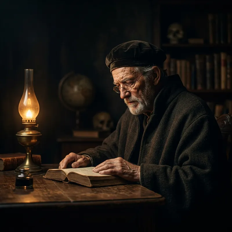 An 8k, highly detailed, realistic depiction of a scene illuminated in the style of Rembrandt, referred to as the painter of light. The scene should capture the essence of Rembrandt's signature chiaroscuro technique, with dramatic contrasts between light and dark areas. Focus on the way light is portrayed, emulating how Rembrandt masterfully handles the effect of light on different surfaces.