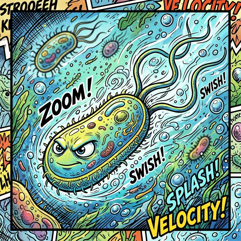 Bacteria with Three Flagella in Comic Art
