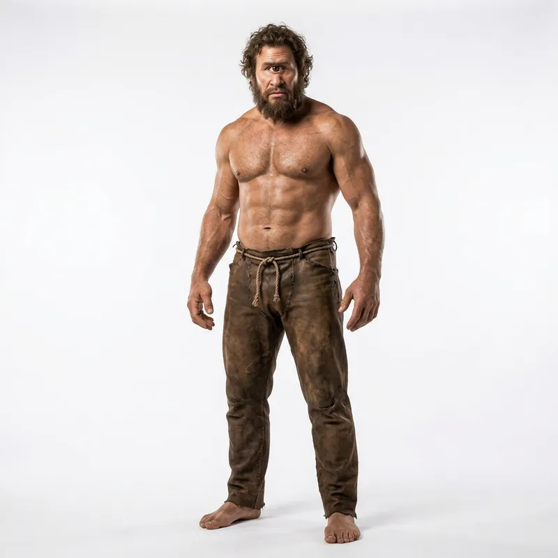 A big cyclops one eye from Greek mythology with only pants and a white background.