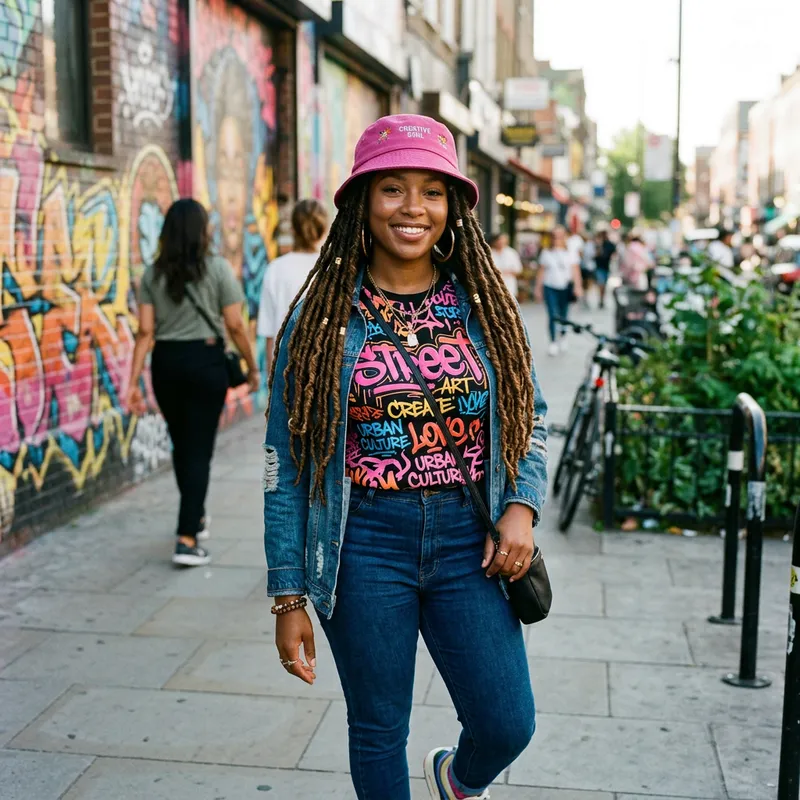 A Fashion Statement: Black Woman in Pink Bucket Hat