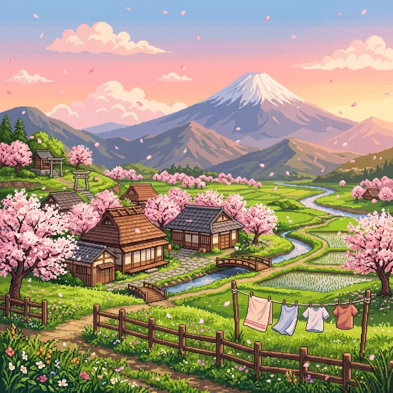Tranquil Pixel Art of the Japanese Countryside