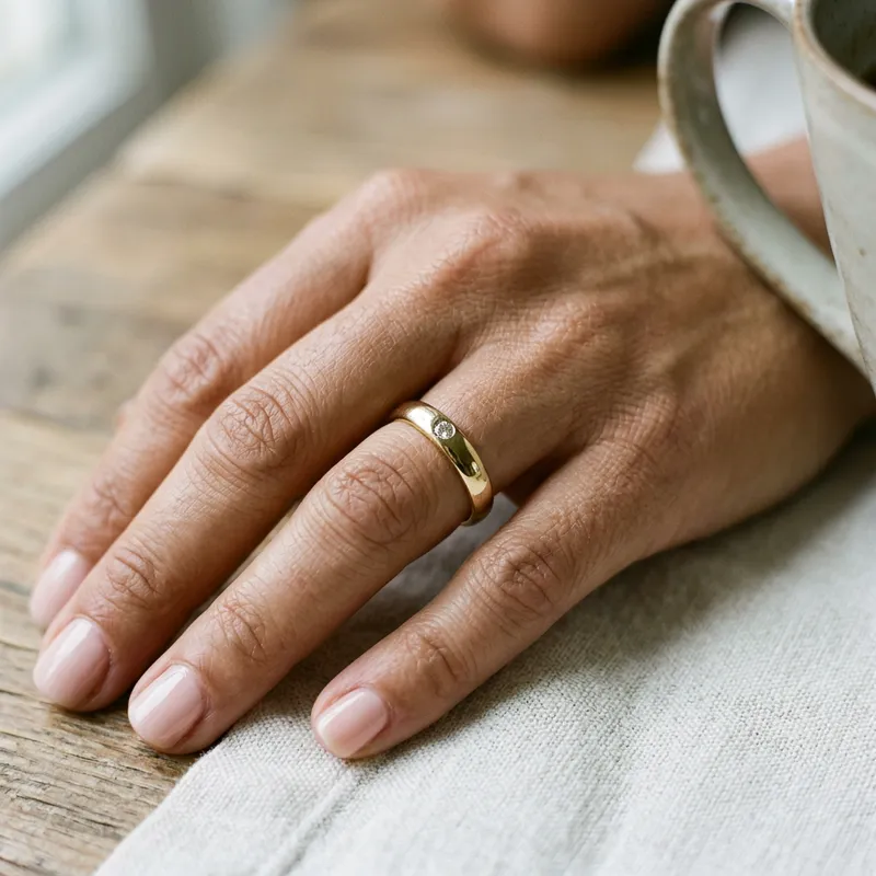 Elegant Close-Up of a Woman's Hand with Gold Ring