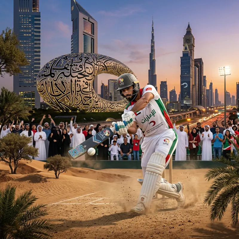 A cricketer where it should reflect UAE's nature, innovation, culture, or future