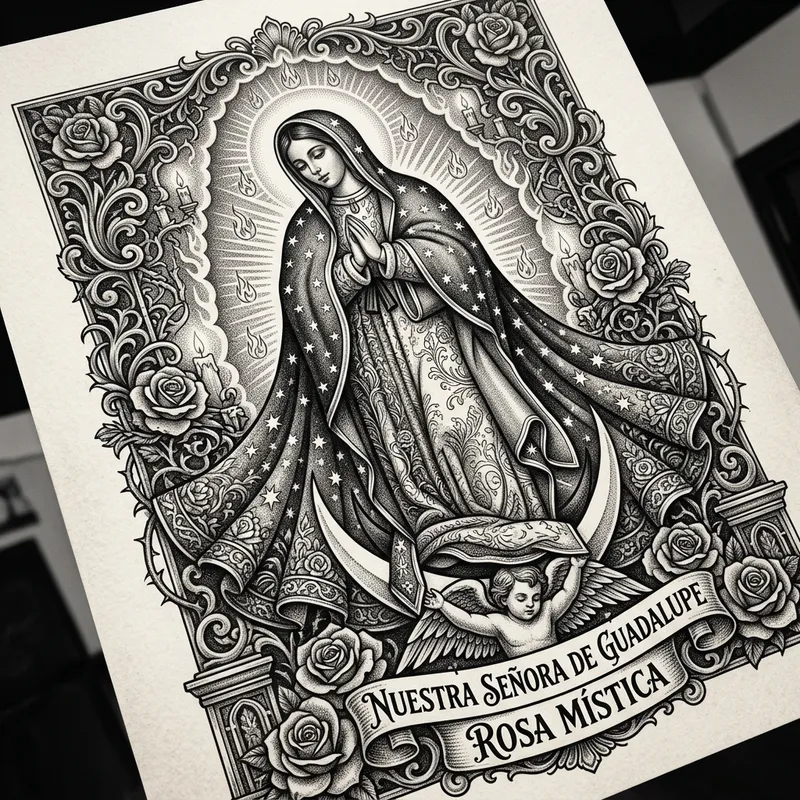 Detailed Virgin of Guadalupe Tattoo Art