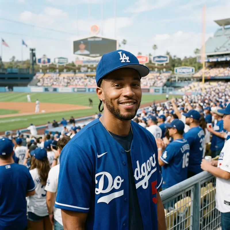 Stylish Black Man in Dodger Hat with Cornrow Braids