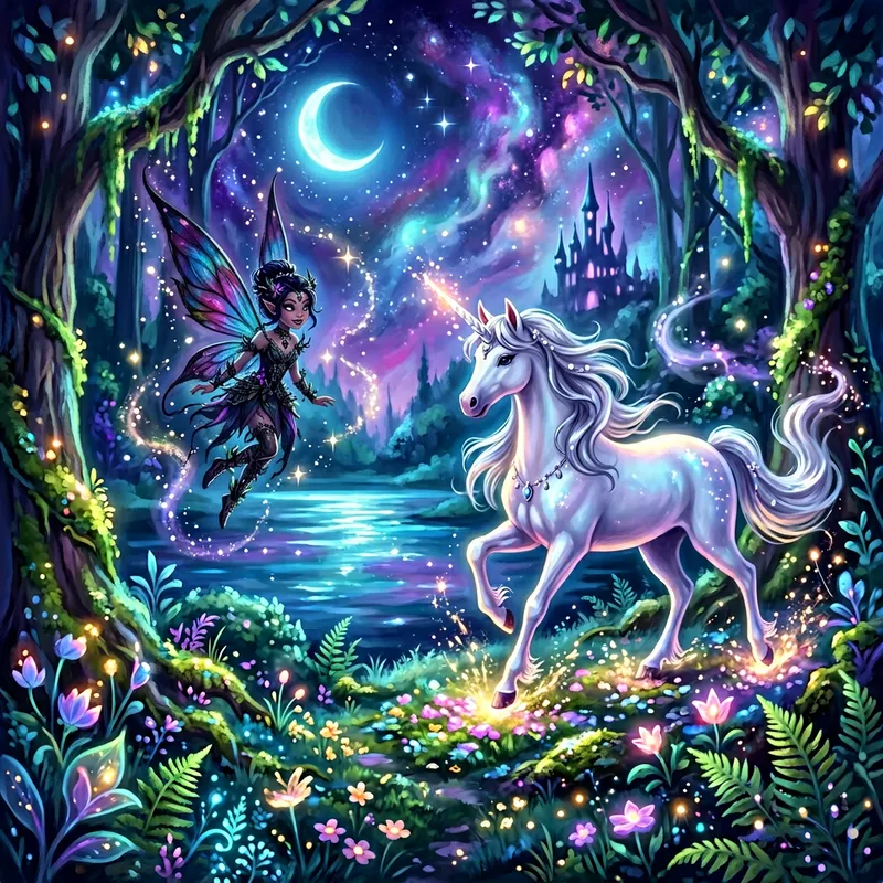 A Mystical Fantasy with Unicorn and Dark Fairy
