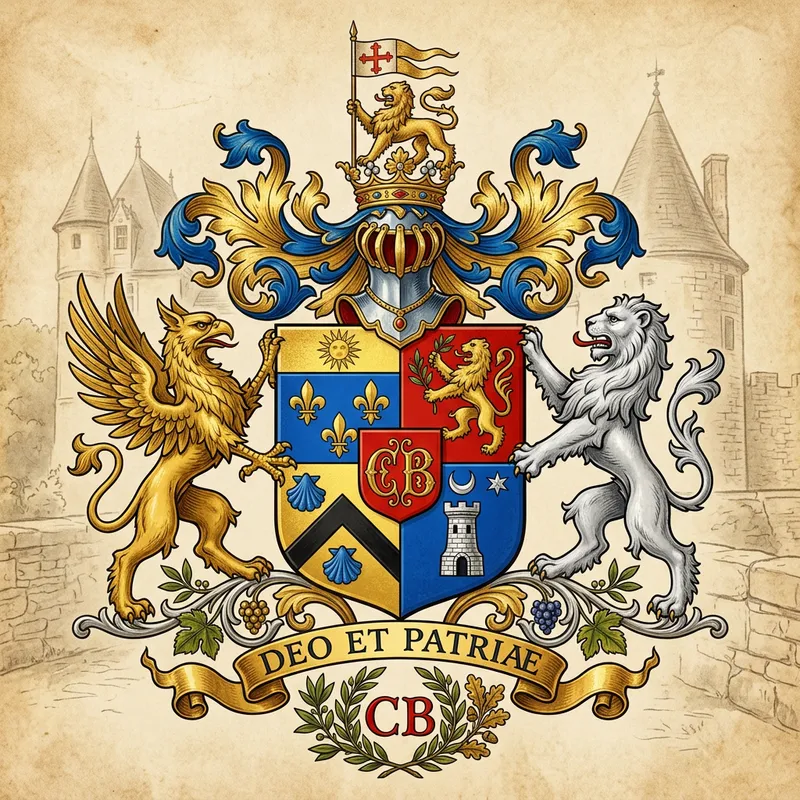 A noble family crest for a French family, from the south of France, with initials CB and heraldic style.