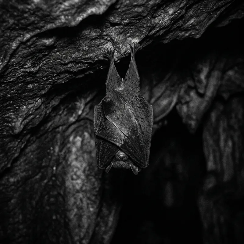 Stunning Black and White Photo of a Sleeping Bat