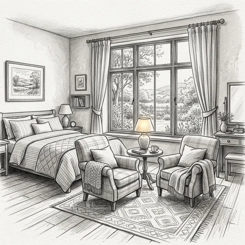 Stunning Pencil Drawing of a Guest Bedroom