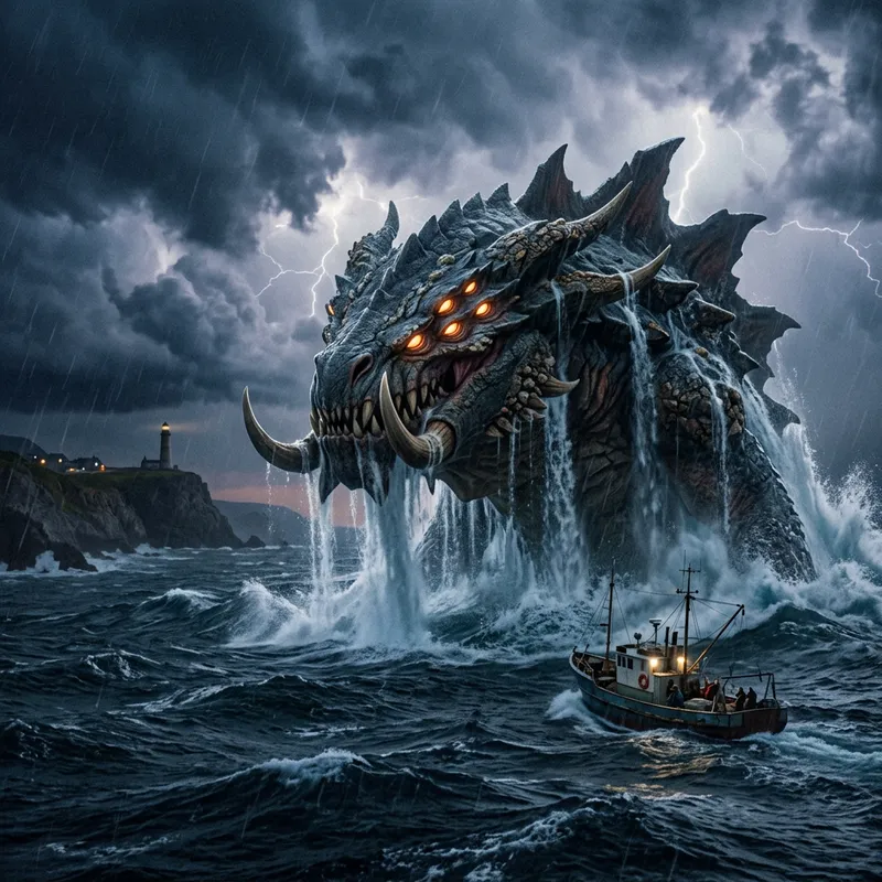 a sea monster emerging from the ocean