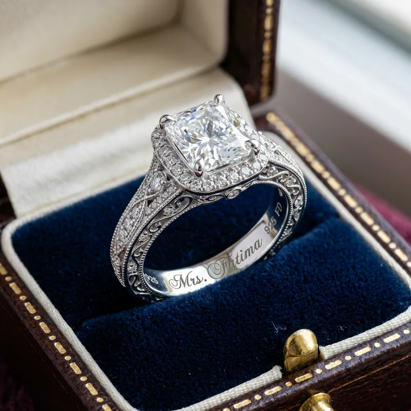 A silver ring, with fantasy diamond, very expensive , best lady fashion, for mrs Fatima.