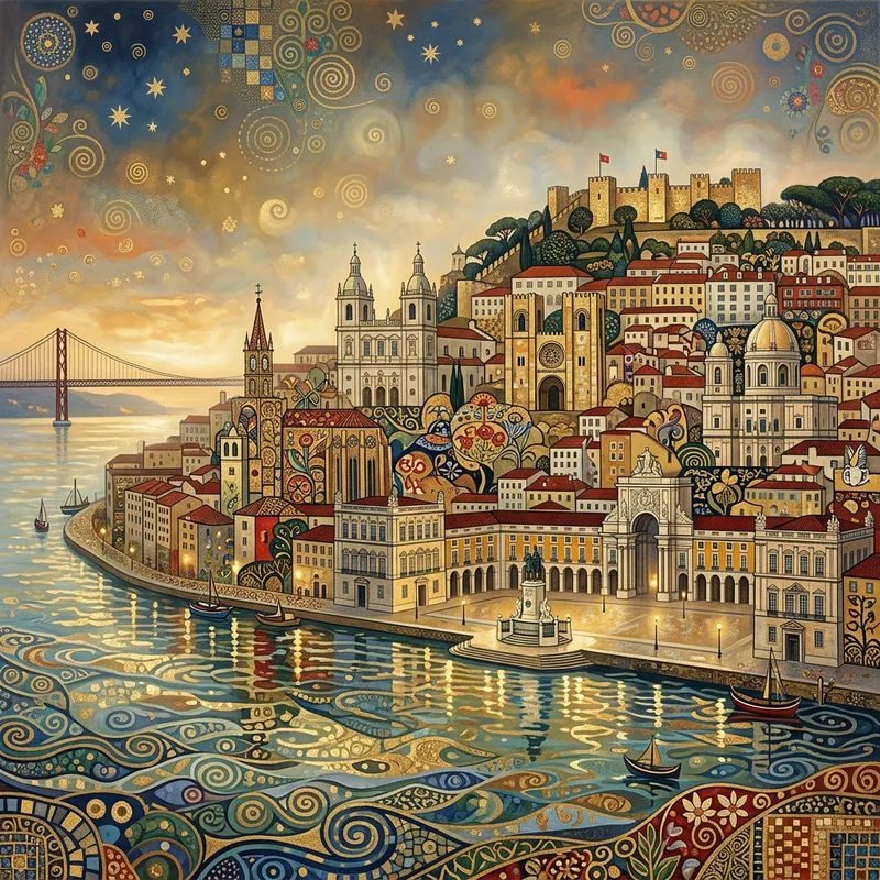 Lisbon Skyline in Klimt Style
