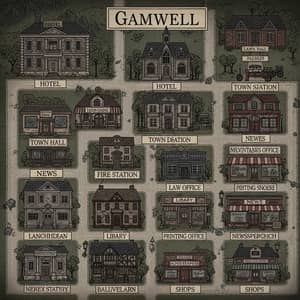 A small village with Post office, Clinic, School, Town hall, park, grocery store, and a fire department.