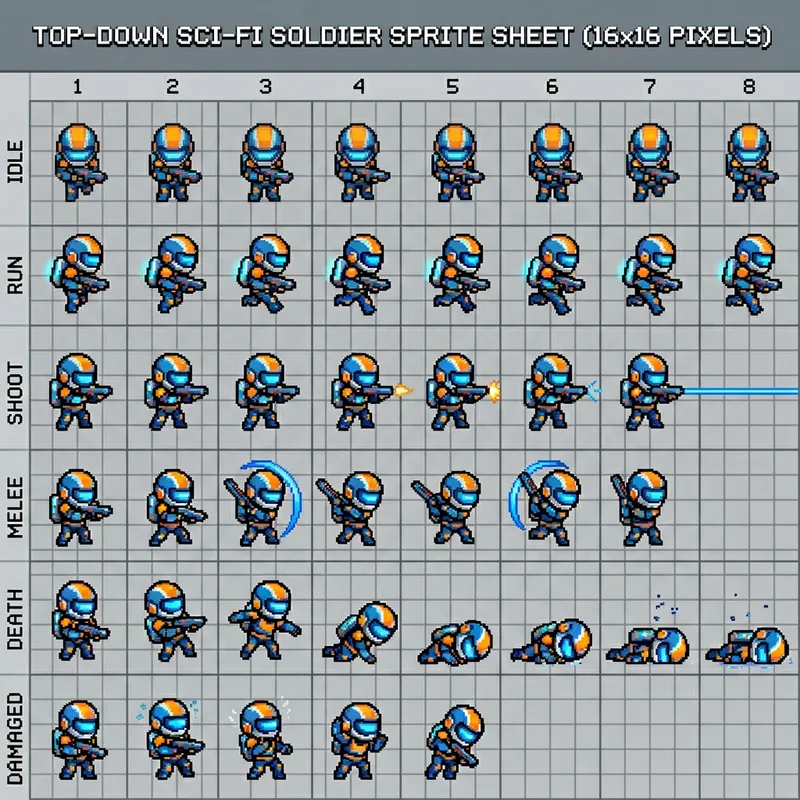 Cute Sci-Fi Soldier Sprite Sheet with Animations