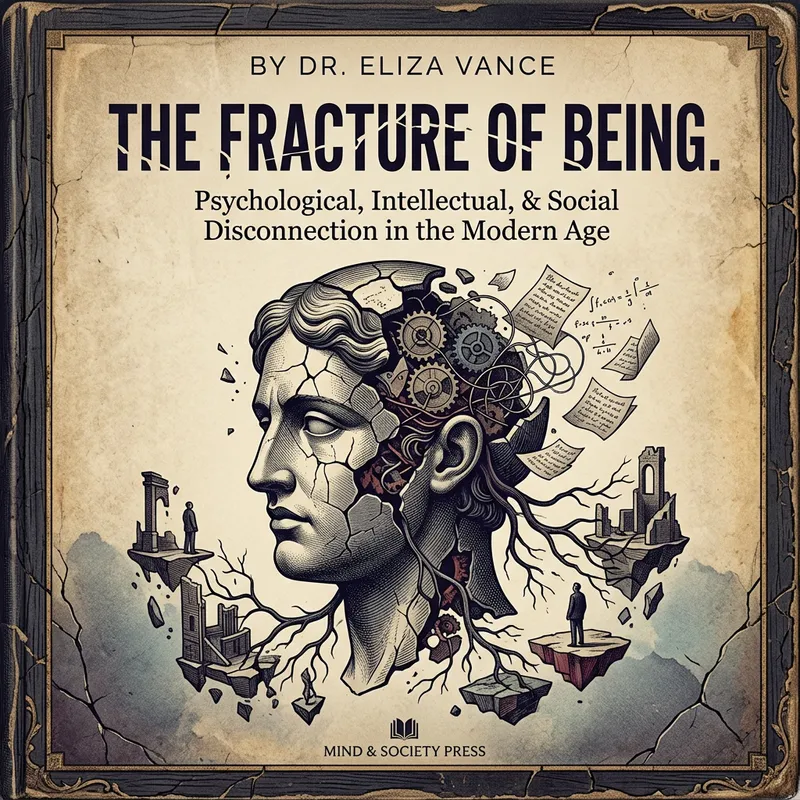 A surreal and symbolic book cover depicting psychological, intellectual, and social fragmentation.