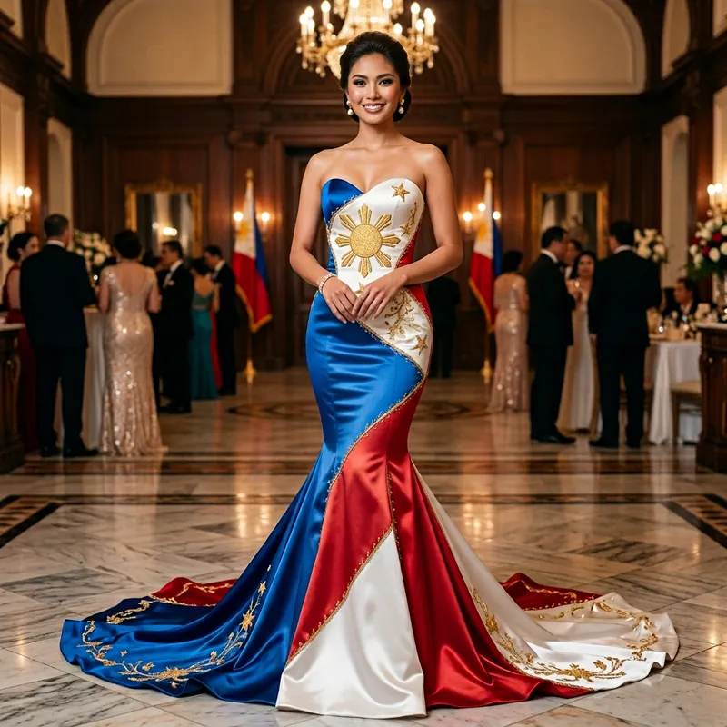 Stunning Mermaid Gown with Philippine Flag Design