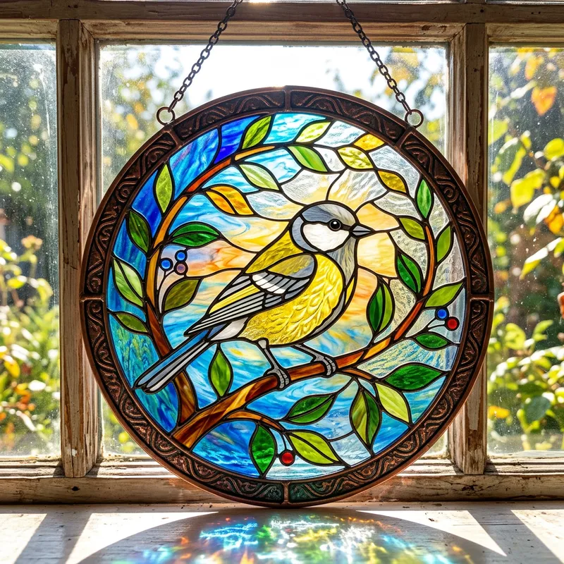Vibrant Stained Glass Suncatcher of a Bird