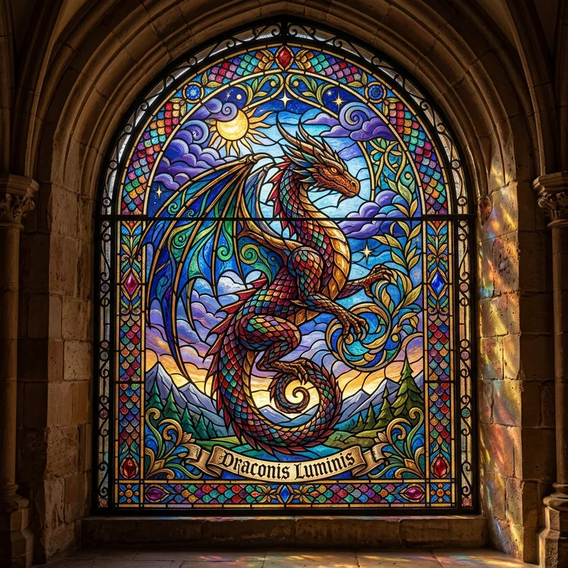 Vibrant Stained Glass Window with Scales