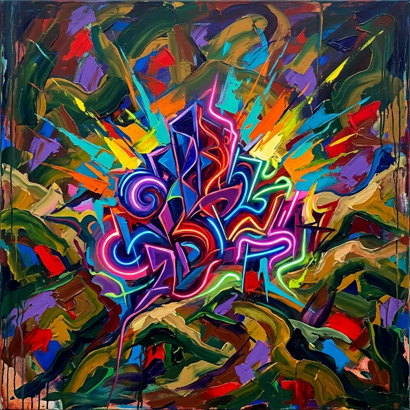 An abstract landscape, basking in the undulating shapes and erratic color patterns typically associated with non-objective art. At the heart of this landscape, a casino stands dazzling, its vibrant neon lights melding into the abstract surroundings. It radiates energy, signified by shards of bright colors leaping out. The unusual topography around it draws on elements of abstraction, with unpredictable contours and hues that mimic the chance and randomness inside a casino. There is a sense of drama and excitement, much like the thrilling anticipation of a gamble, mirrored in the striking visual contrast between the casino and its abstract backdrop.