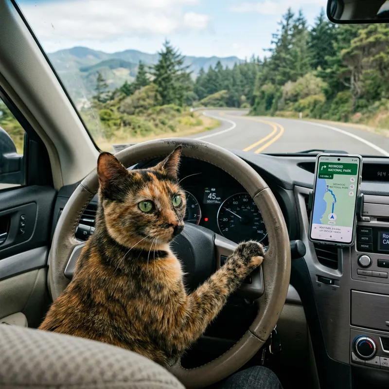 Adorable Cat Driving Car with iPhone GPS