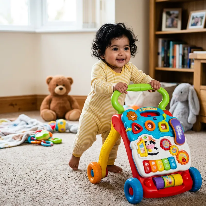 Explore the Adorable Chubby South Asian Baby with Toy Walker