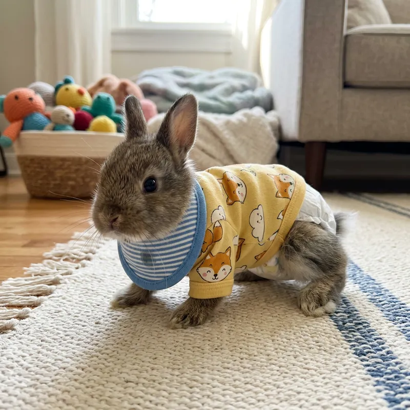 Adorable Newborn Baby Rabbit in Diapers and Bib