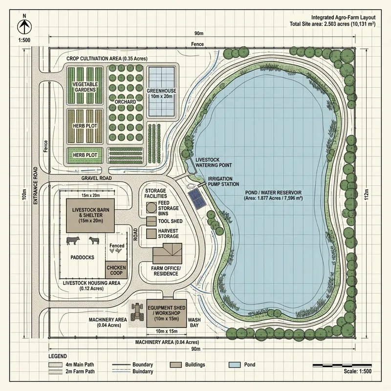 Detailed Agro Farm Blueprint on 2.503 Acres