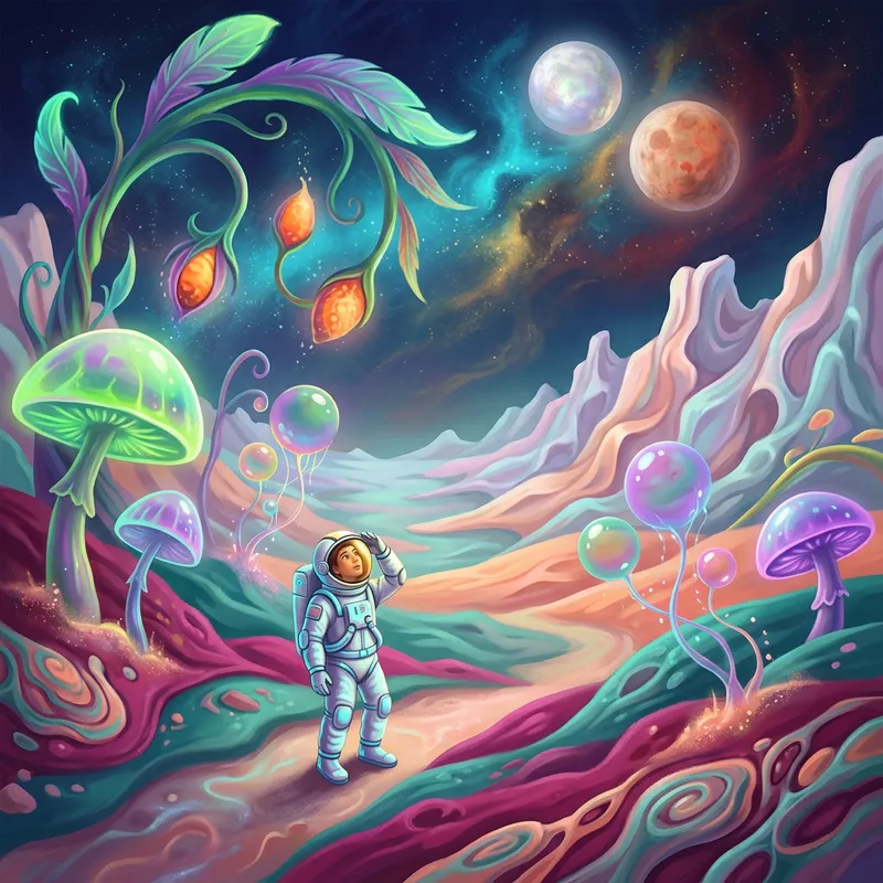 An Astronaut's Surreal Adventure in an Alien World