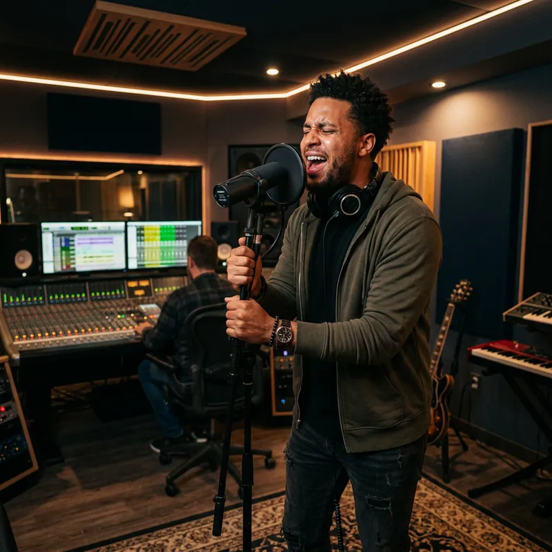 R&B Singer Showcasing Talent in High-Tech Studio