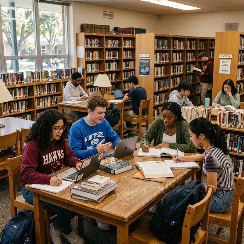 an image that represents high school students in the library