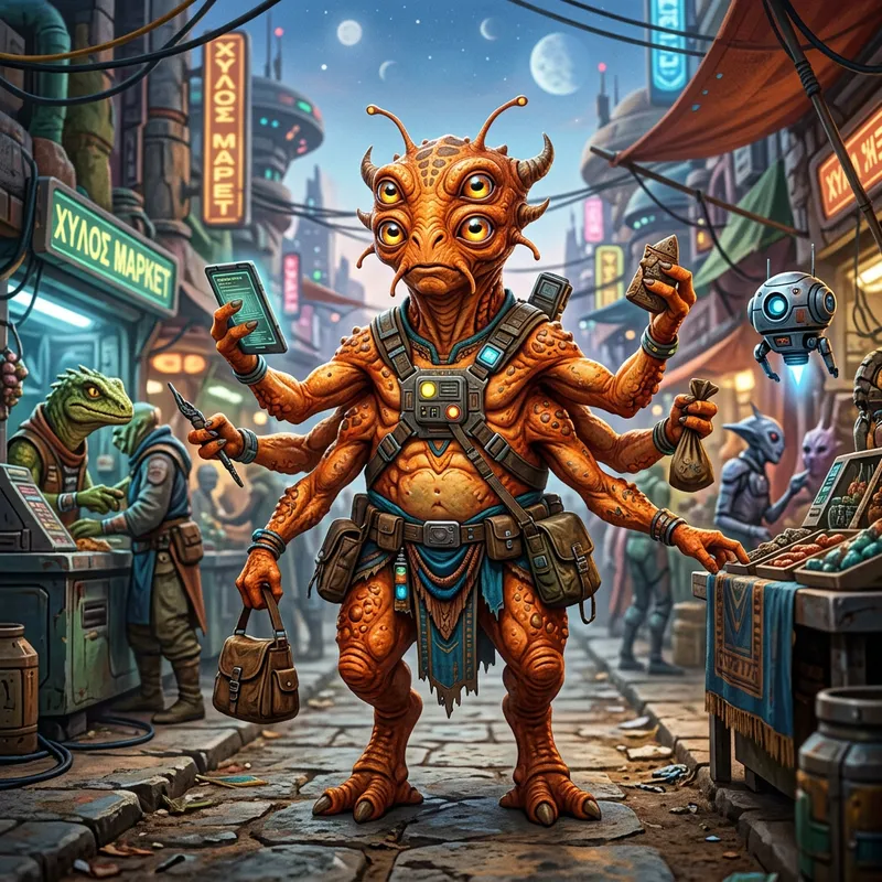Meet the Orange Alien: 4 Eyes and 6 Arms