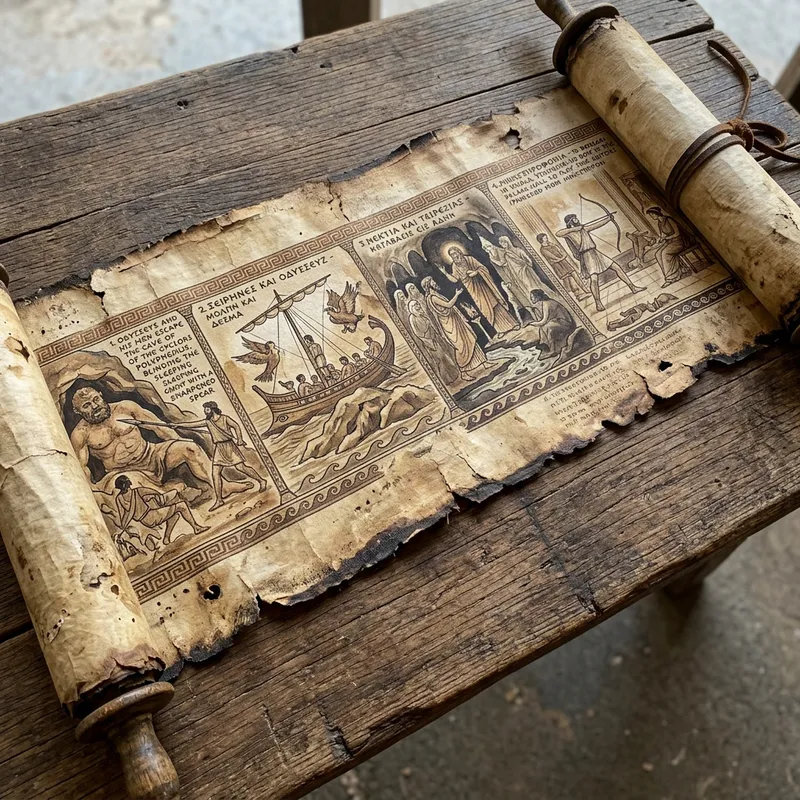 Illustrated Stories of Homer's Odyssey on Ancient Scroll