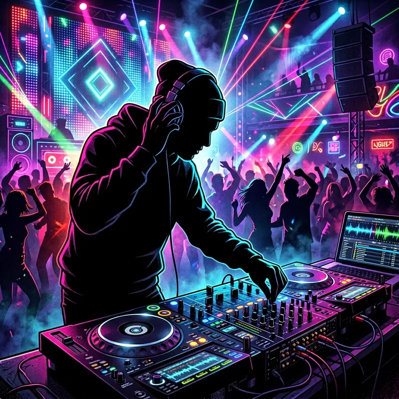 Animated DJ Mixing Music at Vibrant Party Event