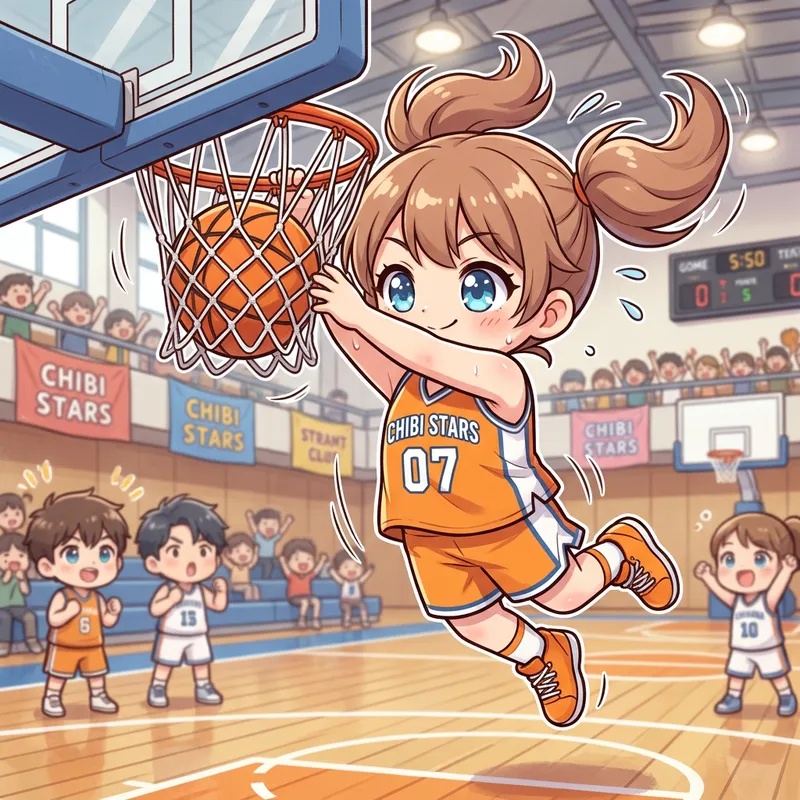 Anime Chibi Girl Dunking Basketball
