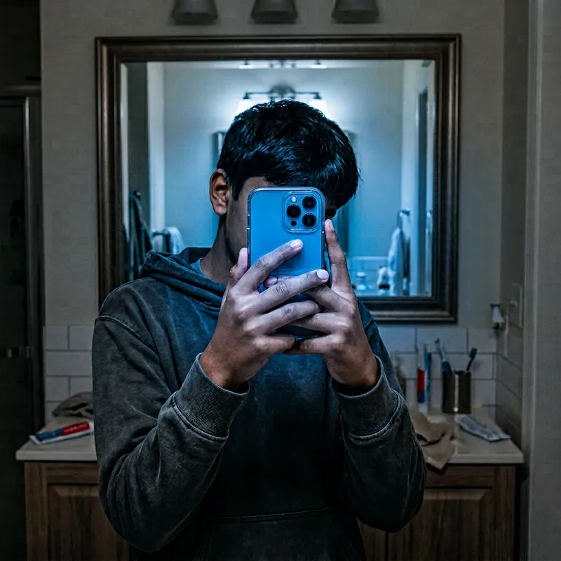 Anonymous South Asian Boy Taking Mirror Selfie with iPhone