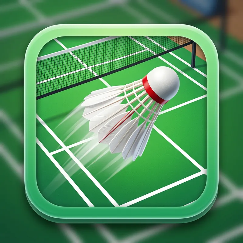 An app icon with a background of a green badminton court and a flying shuttlecock.