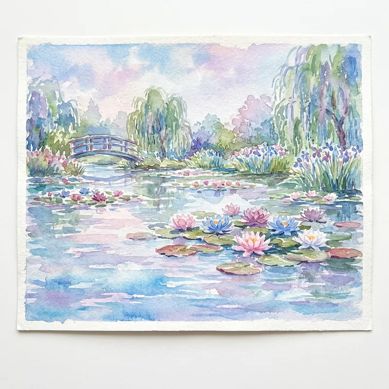 Serene Aquarelle Painting of a Lily Pond