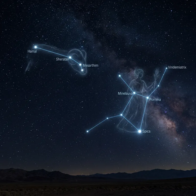 Aries and Virgo Constellations in the Night Sky