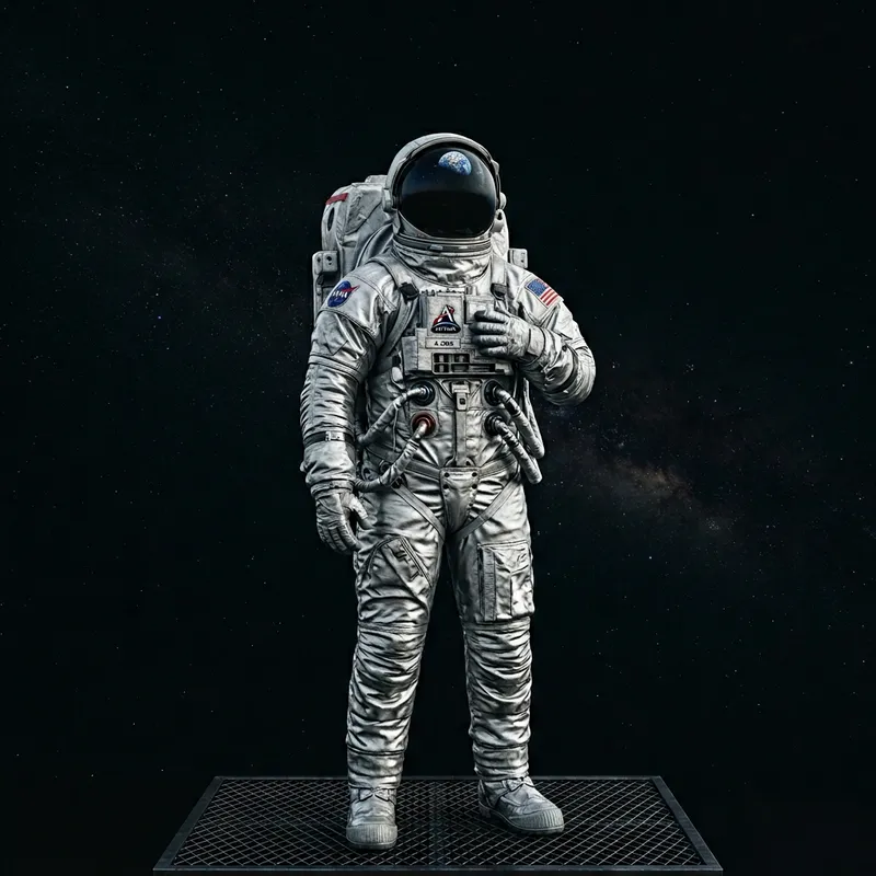 Astronaut in Shiny Space Suit Against Minimalist Background