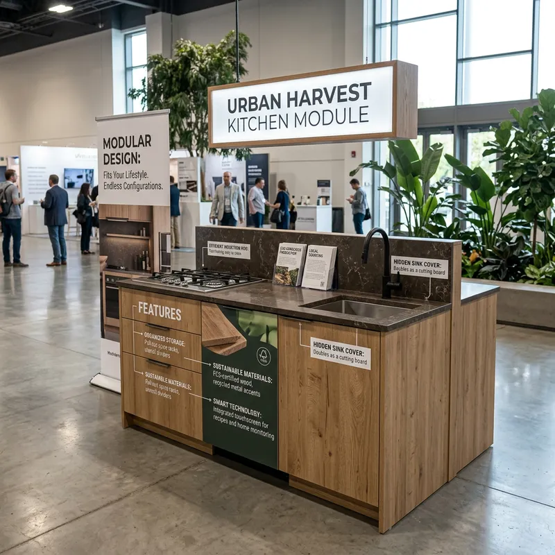 Position an attractive kitchen module on your floor space, filled with interesting information about the product.